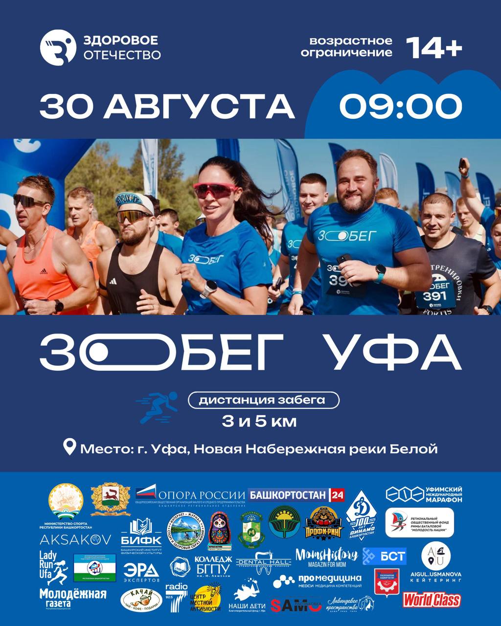 30 августа на новой набережной реки Белой пройдет массовый забег, организованный движением «Здоровое Отечество».