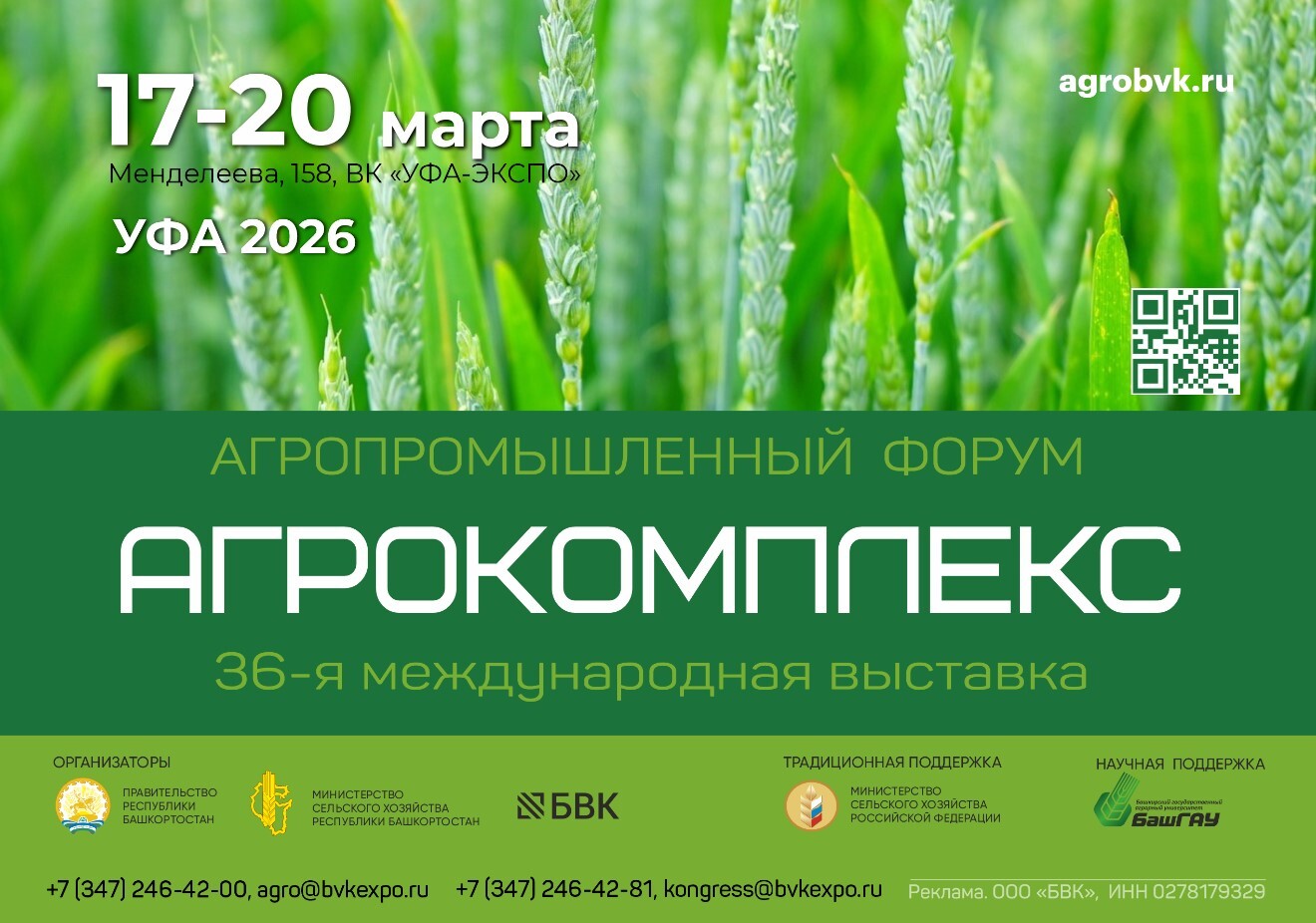 С 17 по 20 марта 2026 года в Уфе пройдет одно из ключевых событий агропромышленного комплекса России — Международная выставка «АгроКомплекс» и Агропромышленный форум.
